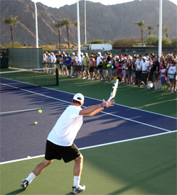 That's just one example of how it works, because the Pacific Life Open is an overflowing cornucopia of elite stroke production, with every technical and tactical style you can imagine. Who was out there over the first two days of the tournament? Well name any player in the top 50 (with the exception of a few of the women), and all of the exciting young players like Novak Djokovic, Andy Murray, Marcos Baghdatis, Richard Gasquet, Sam Querry, Anna Ivanovic, Anna Chadvatadze, and the list goes on.