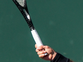 Roger has always held his backhand with part of the hand off the handle - and we know he also uses a relatively small grip size. This complicates understanding his grip for sure. But what I see is the same grip before and after. Basically it's what I call a 1 / 1 with the index knuckle and center of the palm on top of the top bevel. (For more on the backhand grips, Click Here.) Imagine putting your palm down on top of the grip and just wrapping the fingers around from there.