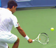 After this initial unit turn, as with the other groundstrokes, the shoulders and the rest of the torso continue to rotate. At about the time of the bounce on the court, the line of the shoulders reaches 90 degrees to the net or a little more. This is a good checkpoint for the timing of the preparation.