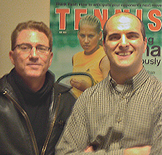 Meanwhile back in the office at Tennis, I also had the chance to meet with Jon Levey with whom I had worked on a couple of previous instructional pieces. He had a problem the average player probably wishes he had--an office piled up floor to ceiling with rackets, shoes, and every other type of tennis gear known to man for the upcoming equipment issue--pretty amusing.