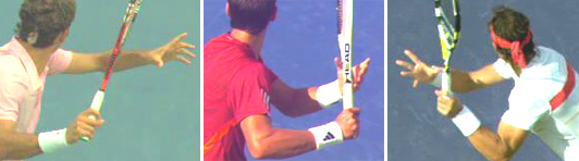As we have seen every player at the top of the game develops his own unique backswing size and shape, and Federer and Nadal and Djokovic are not exceptions. As we have seen many times, however, some commonalities definitely apply in the start of the preparation.