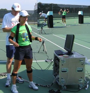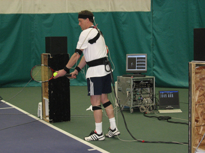 Magnetic sensor technology requires that the players wear sensors which are attached to computers through a series of cables. The system is somewhat restrictive since it won't allow for actual point play or movement for full court coverage. However most players adapt to the system and are able to reproduce their natural strokes relatively easily in a short period. The advantage is the rapid generation of the analysis, a matter of hours, as opposed to literally months with some video or film based systems.
