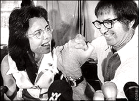 Riggs greatest claim to fame, or rather infamy, was losing to Billie Jean King in the "Battle of the Sexes" in 1972, an event that helped put tennis on the media map. The massive hype around the event, fueled in large part by Riggs own relentless efforts, cast him as an aging sexist clown, a role he played to the hilt for his own profit and amusement in the years to come.
