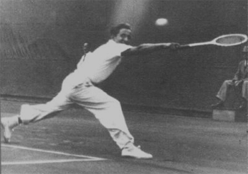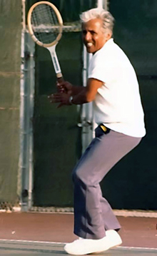I made the mistake of playing Pancho once when I was out of shape and not hitting the ball sharply. He ran me so brutally that at 2 - 4 down in the first set I was so too winded to take another step. With apologies I had to pack up and stagger off.