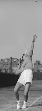 My opponent was a Hungarian girl, Suzy Konnoczy, whose tiny size, five feet two inches, made us look like Mutt and Jeff as we walked out on the court. But Suzy was on her game that day, and she gave me a hard fight. I won both sets 6-4, 6-4, but Suzy didn't yield a point without a struggle.