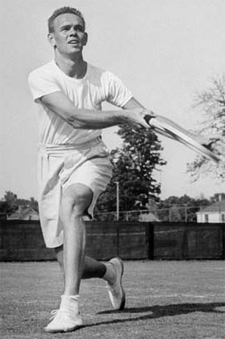 "You improved because you had to. I played against the wall to practice volleys. Practice first from a standing position then on the run. In a game, nobody is going to hit the ball back to you. So you must master balls coming from corner to corner." Pancho's speed was legendary. As Jack Kramer had learned from playing him before the war, Pancho could wear down anybody.
