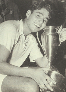 Gonzalez reached match point, and the crowd sat riveted by the action. Schroeder hit a drive down the sideline that Gonzalez did not return. Time stood still while everyone awaited the linesman's call. When he signaled out - of - bounds, the crowd went wild! Richard Gonzalez was the 1949 United States tennis champion.
