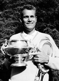 "Becoming the oldest Wimbledon mens' doubles champion in 1957."