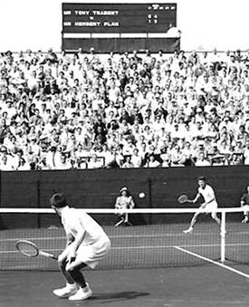 But from that point on, the 24-year-old--who would turn 25 on August 16th--had one of the best competitive years in tennis history. In Paris, Trabert. the top seed, defended the title he won the year before downing the No. 11 seed Sven Davidson of Sweden, 2-6, 6-1, 6-4, 6-2. He and Seixas again won Roland Garros doubles, this time subduing the Italian tandem, Nicola Pietrangeli and Orlando Sirola, 6-1, 4-6, 6-2, 6-4.