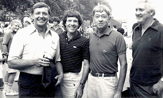 The smooth-talking Hester knew deal making and he was shrewd. He approached the City of New York and negotiated an arrangement for the 16-acre facility that resulted in a $10 million dollar refurbishing by the USTA. Armstrong Stadium became a 20,000-seat arena--the largest in tennis at the time. There was also a 6,000 seat Grandstand Court alongside, as well as 25 additional courts.Caption: Tony Trabert, Mark Winters, Tournament Director, Bill Talbert and Pat Summerall on the first day in 1978 at "The House that Slew Built".