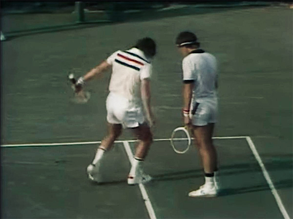 In a Men's semifinal, Jimmy Connors was in true "Jimbo Form" against Corrado Barazzutti. The unseeded Italian challenged a line call claiming the shot was out, but before the chair umpire could extricate himself from his seat to check if the ball was, indeed, wide of the sideline, Connors scurried around the net, went to the mark, and rubbed it out with one of his "kicks..." The No. 2 seed went on to win the testy clash, 7-5, 6-3, 7-5.