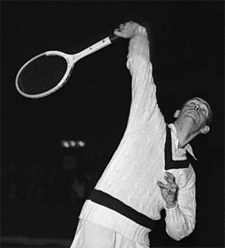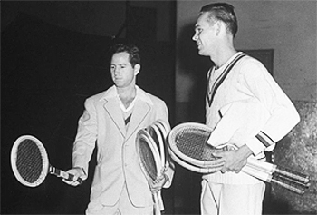 By 1947, with the amateur game reorganized after World War II, the eyes of the tennis world were on a hot young player named Jack Kramer. One of Perry Jones' "golden boys" from the L.A. Tennis Club, Kramer was tall and handsome. (Click Here for the amazing story of Perry Jones and his unique strangle hold on world tennis.)