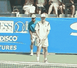 Granted, McEnroe hit the center serve as well as anyone, but at least by stepping into the alley I was letting him know that it wasn't going to be so easy for him to play that classic lefty combo of the swinging wide serve and the angled backhand volley. Making a guy play shots or sequences he'd rather not play is a great way to at least attempt to establish a toehold.