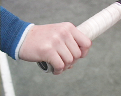Ideally, the index and middle finger should be spread at least slightly up the side of the handle to encourage better feel. Players who fist the racket handle tend to muscle the ball and have trouble manipulating the racket face in the critical split seconds around contact.