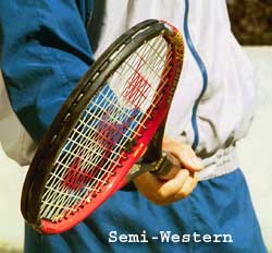 The semi-western forehand grip is very similar in a lot of respects to the extreme western, but has definite advantages over the extreme western. With the hand in a less extreme position getting the racquet head through the ball is much easier and makes for a less wristy shot.