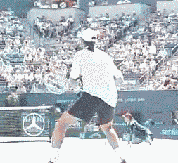With his Semi-Western grip, Agassi can hit flatter and penetrate the court. |