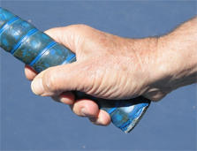 Do not guide your volleys with long finishes unless the oncoming ball is very slow. Your squeezed grip feel will have a bit more pressure on your last three fingers, not your thumb and first finger.
