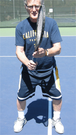 This shot is tremendously effective for a player like Jeff who can hurt his opponent with a heavy forehand approach, close fairly tightly to the net, and then angle the ball crosscourt on a sharp angle for a winner.