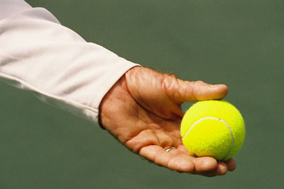 To what degree does the way you hold the ball affect the accuracy of your toss? There is a range of ways good tossers hold the ball in their hand, anyone of which may work for you. What's most important is the momentum or lift from the arm, followed by the angle of the arm, and also, the relative inactivity of the wrist. Another factor is the spreading of the fingers as the ball is released. My suggestion is to hold the ball so that the middle of the ball rests between the top two joints of your fingers. The little finger stays pretty much unattached throughout, but obviously that can vary from player to player. If you move the ball more towards the fingertips you'll be more inclined to snap your wrist back towards you when you release. This creates excessive spin which can lead to loss of control and disrupts what should be a very relaxed, deliberate movement.