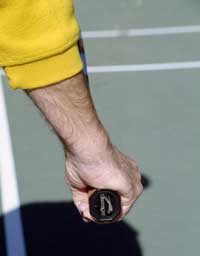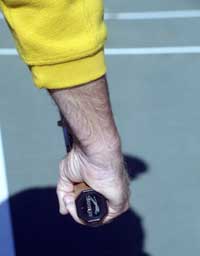 But the rub in learning the service grip is that for most players, their first attempts result in mishits and or serves that are overly sliced. Consequently, the continental grip is dropped and the old reliable, one-dimensional serve reappears.