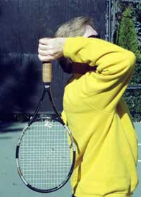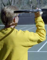 This cocking of the racquet is a part of what's called the "trophy position" that I'll discuss in more detail in part two.