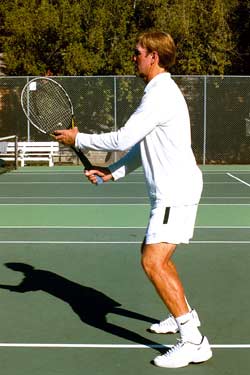The final two aspects, the use of your eyes and the split step (or ready hop) are of tremendous importance. A player who consistently tries to guess where his opponent will hit the ball is in for trouble. Think about it. How often do you "sort of" see the ball off the racquet in your rush to know where the ball might go? Are you really seeing the ball or is it more of a guess?