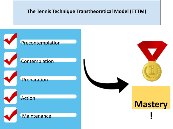 These six stages can be modified and applied to the technique building and acquiring process. Developing tennis technique also requires a movement along the transtheoretical model.