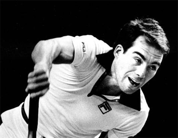 The style of play of each player was very different. Although both lived and died at the net, Mac relied on touch, soft hands, and a serve he used especially well-in this match, a wide left-handed slice to Sadri's backhand.