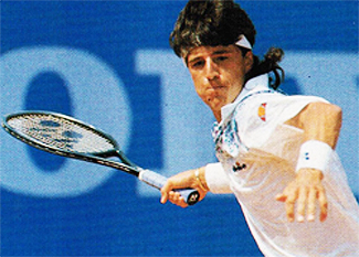 Add to this his--at the time--weird grip, a strong semi-western, and you get a preview of today's game. He was smashing the ball around the court when others were just pushing it. His dad, an engineer who was also small, had taught it to him.