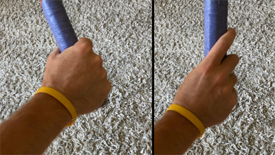 This grip change is also very easy to learn. It's just usually not recommended because of the very short reaction time you have at the net, but it's biomechanically sounder.