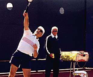 First there's the role of traditional lessons. Some people have the feeling that the more lessons the better. Some parents like to brag: "My kid takes lessons everyday." That's a crazy idea. If the pro feeds balls to the kid everyday and does nothing but try to correct his strokes, it makes the student stale. The student never learns to do it for himself, since it's all being done for him on the teaching court. In the beginning it's very important for players to think for themselves.