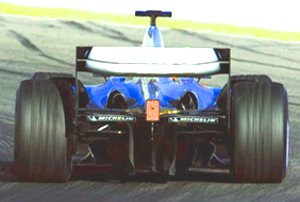 The car's center of gravity hovers only inches above the ground. The width of the wheelbase is proportionately very wide. Together, the wide base and low center of gravity enable the car to perform sharp turns at high speeds and achieve maximum stability against the forces that cause rollovers.