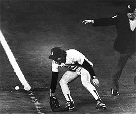Bill Bruckner's famous boot in the 10th inning cost the Red Sox a game and probably the world series in 1986. |