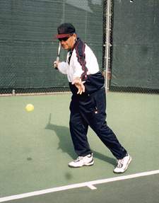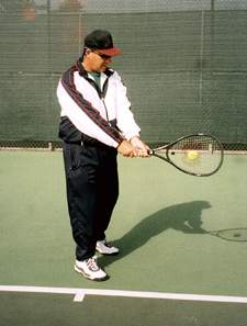 This will help you JUDGE where to go before you move your feet. Predicting where the ball is going to bounce will help you determine whether to attack the ball by taking it in the air or on the rise, or to play it in the more comfortable contact point when the ball is coming down towards the second bounce. More times than not I see players getting too close to the ball rather than too far away from it. By too close I mean the back foot is too close to the ball, a common problem for beginners. Hence, instead of allowing the ball to come down to them they are forced to make contact high above the strike zone. More often than not, the result is an awkward stroke and a weak return.