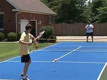 To help facilitate this exercise continue hitting at 20% of your normal pace just like you did during mini-tennis. You might also notice that you will hit higher over the net in order to hit the ball with less pace if you want to hit it deep. Hitting at a slower pace will help you track and see the ball more clearly and will help you stay more relaxed while hitting. After you hit 10 or more balls in a row without missing, experiment with hitting with more pace. As you do, notice what happens to the level of tension in your body.