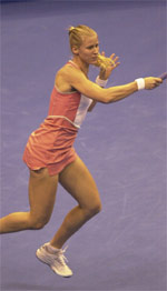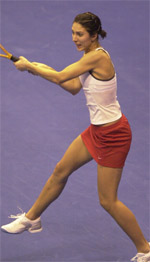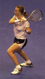 I'm a big fan of the way Alicia Molik comports herself. Not only is she the most improved player on the women's tour, she's a terrific ambassador for the game, a gracious winner and loser. And she's another all-court player with a sweet one-hander. To boot, she seems to enjoy building a point and finishing it with some net play or a lethal down the line backhand. In addition to taking out Venus Williams she's also the doubles titlist at her home Slam (with Kuznetsova). Good on you, Alicia.