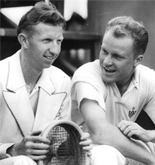 Lifelong club member Gene Mako, right, with his more famous doubles partner Don Budge.