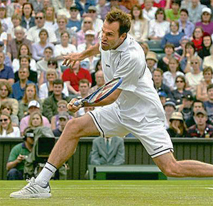 The afternoon's other matches were more in line with my expectations. Venus Williams swatted aside some hapless Belgian. Then came Greg Rusedski versus Andy Roddick, the day's headline contest. Roddick was another young gun of whom much was expected. In America, he was viewed as heir to Pete Sampras and Andre Agassi.