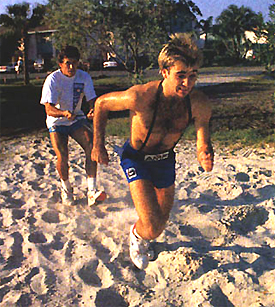 The final component was strength training, work that could be done either in a gym, or on the road without extensive equipment. Again Pat was one of the first to really tailor the type of strength training to the demands of the sport.