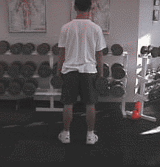Starting Position: Stand with your feet 6-8 inches part, with dumbbells at your sides.