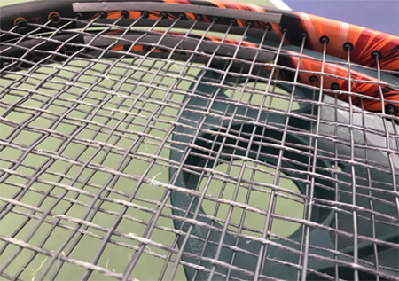 As mentioned in the last article in this series, I use natural gut mains and poly crosses. The gut breaks at about the time the poly begins to die. It almost feels like the gut makes the poly stay lively longer. So I eliminated the pain by adding mass to the handle, not waiting for the gut to break and restringing more often.
