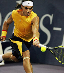 Roger's success in defending made an immediate impression on Nadal. Early in the match, Nadal played most points from 10 or 12 feet behind the baseline. He was so far back that half his body was dropping below that annoying ESPN 2 update ticker at the bottom of the screen.