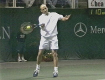 When we looked at the video frame by frame before, during, and after the contact, we got some ideas why. Once we saw the problems in these key positions, we then compared then to high speed video of Andre Agassi's beautiful basic forehand motion. This helped Megan create a new model for the critical parts of the swing, and develop the corresponding mental images and feelings to use on the court.