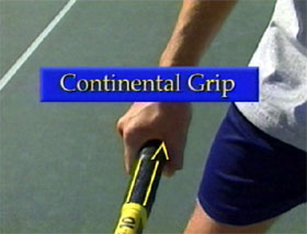 The two handed backhand volley should find the bottom hand in the continental grip and the top hand in more of an eastern to semi-western forehand grip. Much like the one handed backhand volley, you must maintain leverage in the wrist position of the bottom hand. As the bottom hand works to control the racquet head, the top hand provides added support through contact, then releases off the racquet after contact.