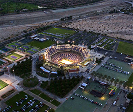 Loving the Environment The other fantastic thing about the event is the whole desert resort environment. Our team has gotten quite found of the Hyatt Grand Champions Resort (Click Here). The Hyatt also has a shuttle bus back to forth to the event every 30 minutes. There is a great gym where the players work out, and personally, I like to head down to the spa pool and the hot tub around midnight. Of course the most beautiful tennis resort in the world is also in the area, LaQuinta. (Click Here.) The prices there during the event will test your belief in your socio-economic status, and there is no shuttle. But the top players like Federer and Nadal and Djokovic stay there and get in some of their practice at the gorgeous tennis complex. The fun thing is you can drive over there and watch them practice, and, if you aren't obnoxious, nobody at LaQuinta seems to mind. But hey, you know what, when it comes to hotels, the Holiday Inn Express will get the job done too, and it actually has one thing over LaQunita - the same regular shuttle service as the Hyatt.