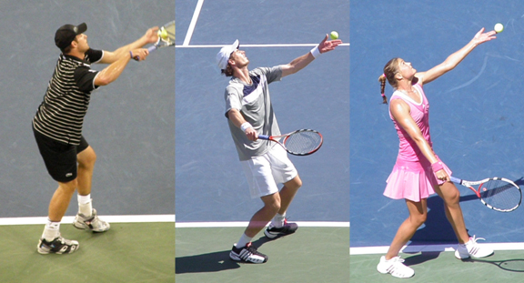 The Three Rhythms (left to right): Andy Roddick in the abbreviated rhythm, Andy Murray in the classic rhythm and finally Dinara Safina in the staggered rhythm. |